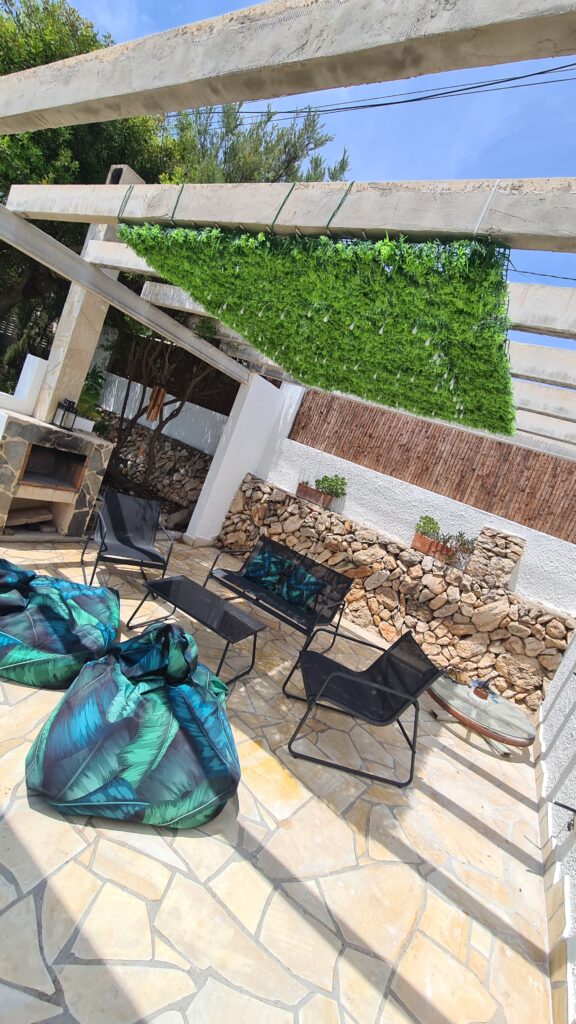 Het huis zelf kenmerkt zich door 2 aparte verdiepingen die enkel langs een buitentrap met elkaar in verbinding staan; 2 wooneenheden dus die een vakantie in privacy kunnen bieden aan 1 groep tot 8 personen of aan 2 vierpersoonsgezinnen!