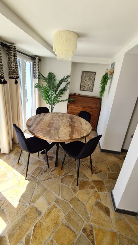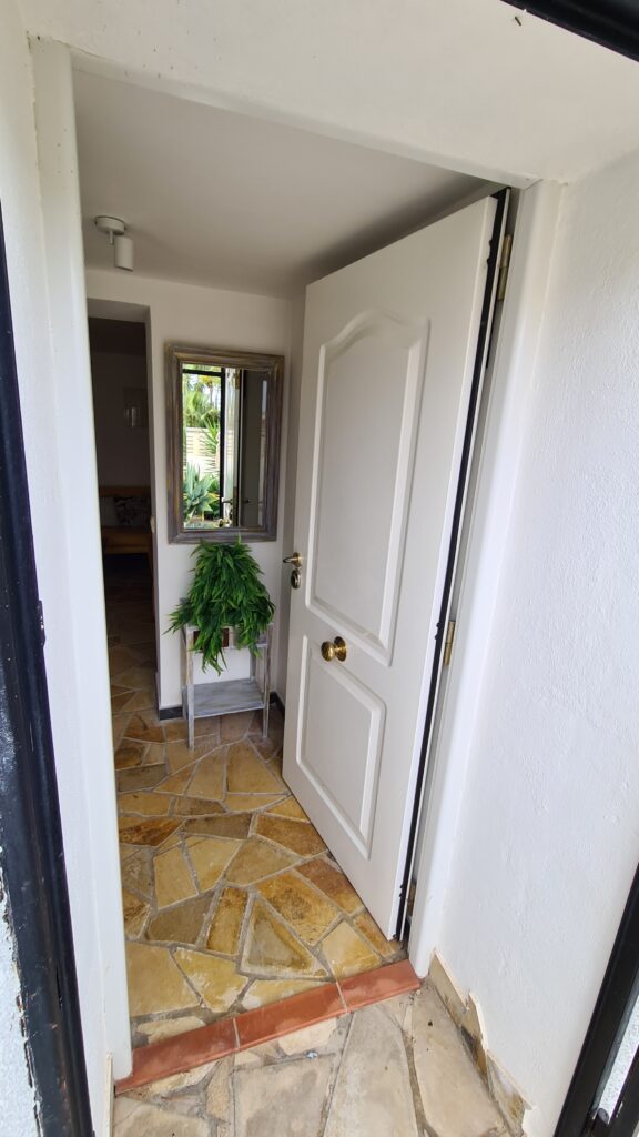 Op de benedenverdieping bevindt zich een volledig onafhankelijke wooneenheid die via een buitentrap verbonden staat met de faciliteiten op de  bovenverdieping. Deze etage heeft een aparte ingang vanaf de straat zowel voor voetgangers als voor een wagen (parkeerplaats binnen het domein).