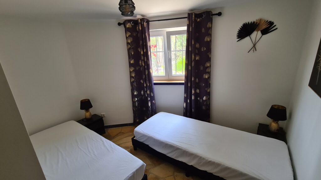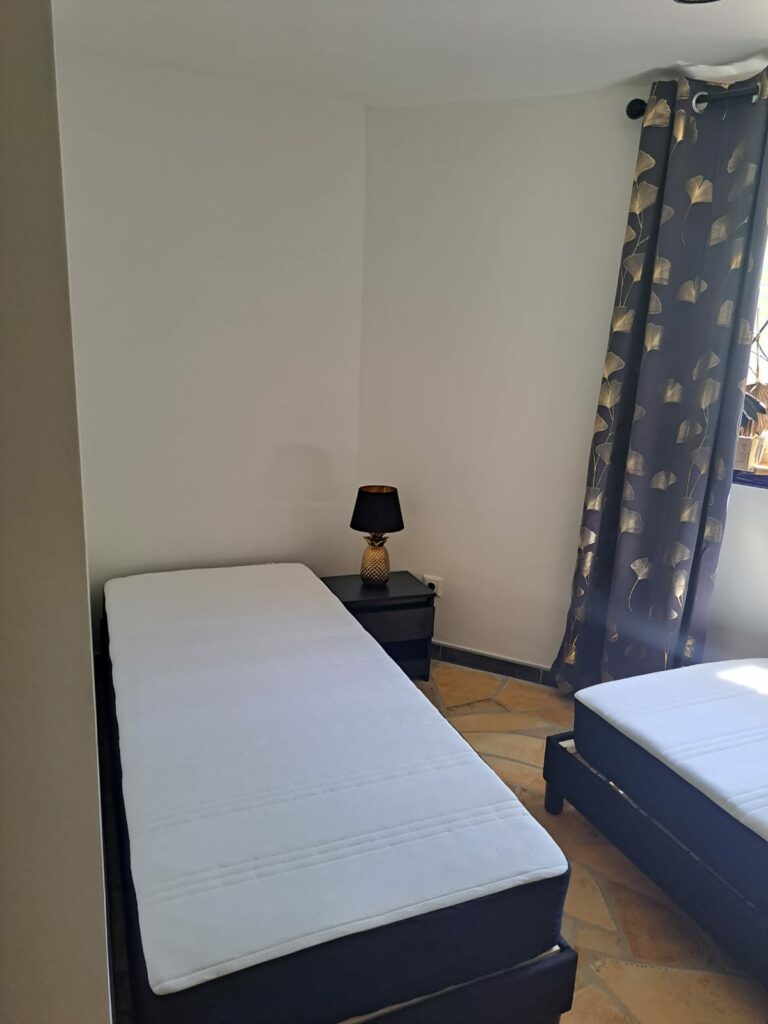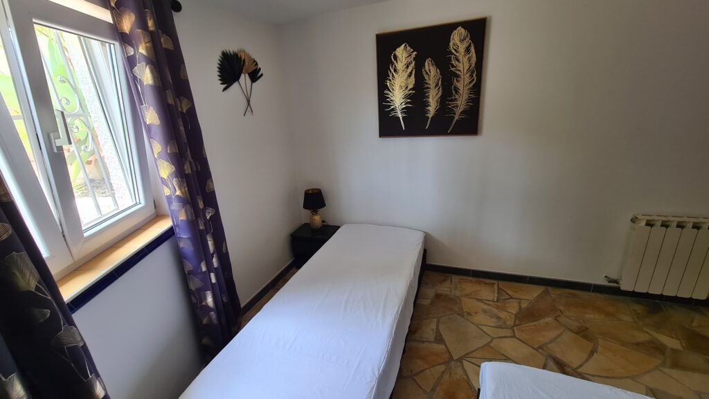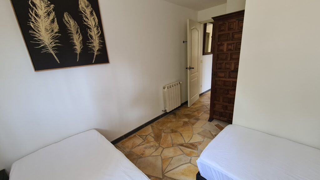 • 1 ruime slaapkamer met een tweepersoonsbed en 1 met een stapelbed dat binnenkort wordt vervangen door 2 éénpersoonsbedden